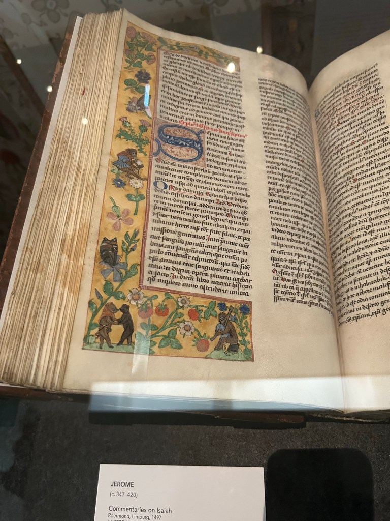 From the ground floor, you can take an elevator to the sixth floor to see the dome more clearly. I worked my way up slowly — and I’m so glad I did. On the fourth floor, the library currently houses its 2022 World of the Book exhibit, which features prominent books and other literary works. The start of the exhibit reads, “Books are mirrors of many worlds: worlds here and sit at, past and present, real and imagined. Through text and image, they act as keepers of ideas, of knowledge and of stories.”
