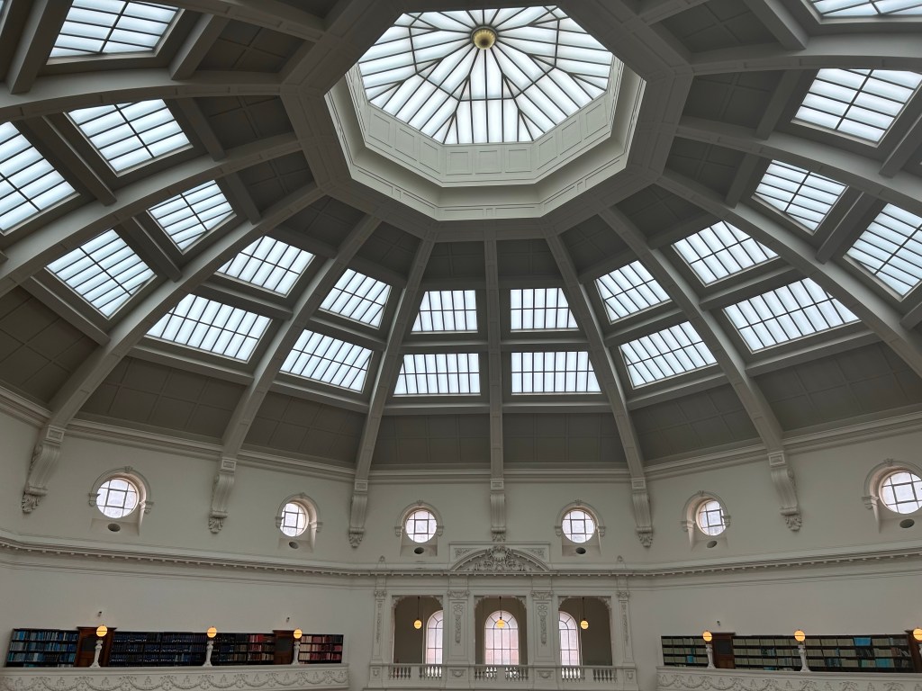 I finally made my way up to the dome viewing floor. The dome building was added to the library to house the growing collection of books and other materials. It was modelled on the British Museum and the Library of Congress. According to information from the library, the dome was the largest reinforced concrete dome in the world at the time of its construction. It was 35 metres high and 35 metres wide. There are 480 glass panes in the dome such that artificial lighting is only needed at night.