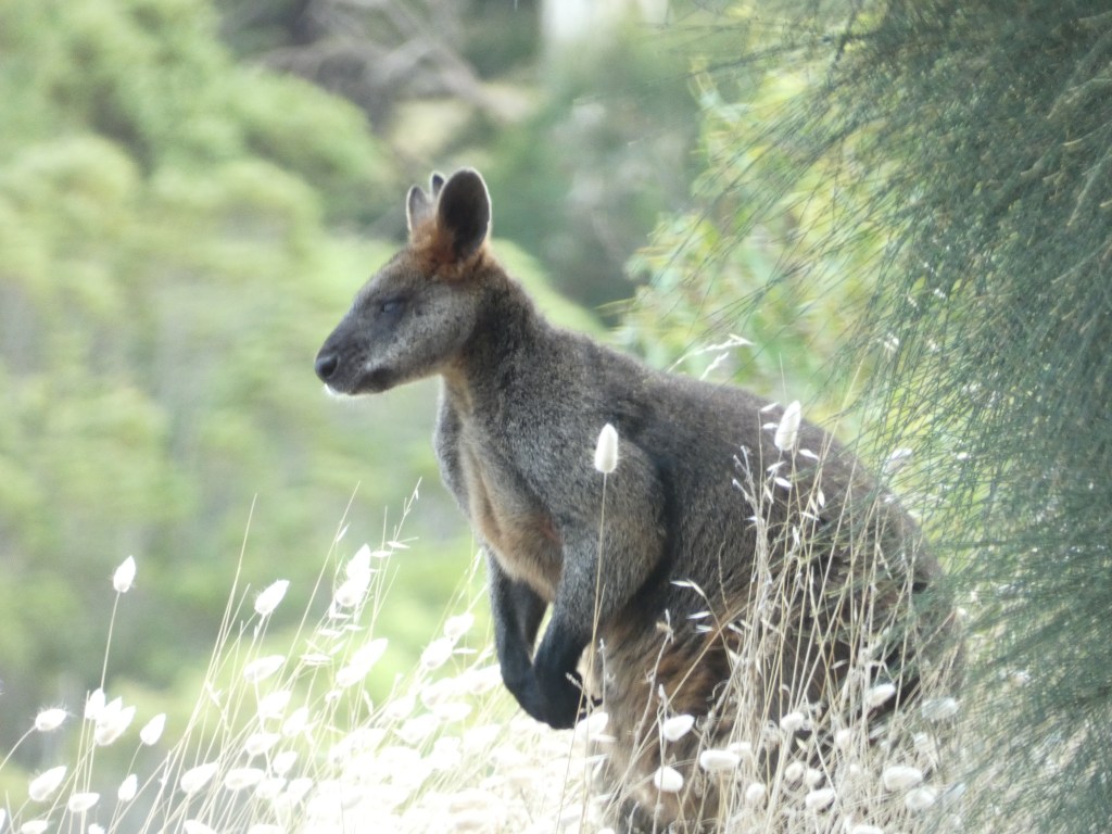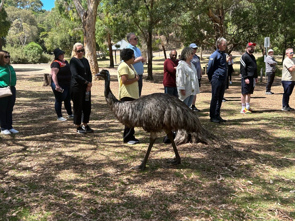 We stopped next at Tower Hill lookout, which had a great view of the crater that was formed when the volcano that used to sit there erupted and then collapsed in on itself. Wildlife have since taken over the area, so we stopped for a walk, hoping to see emus, koalas, and kangaroos. The last of these, unfortunately, were a no-show on the day, but we did get to see an emu, several koalas, and a wallaby! Did you know? The main difference between a kangaroo and a wallaby is their tail: the kangaroo’s spine extends into their tail, giving them the ability to use their tail in more ways than wallabies, whose tails are cartilage.