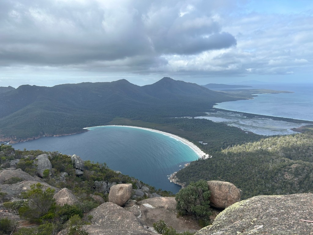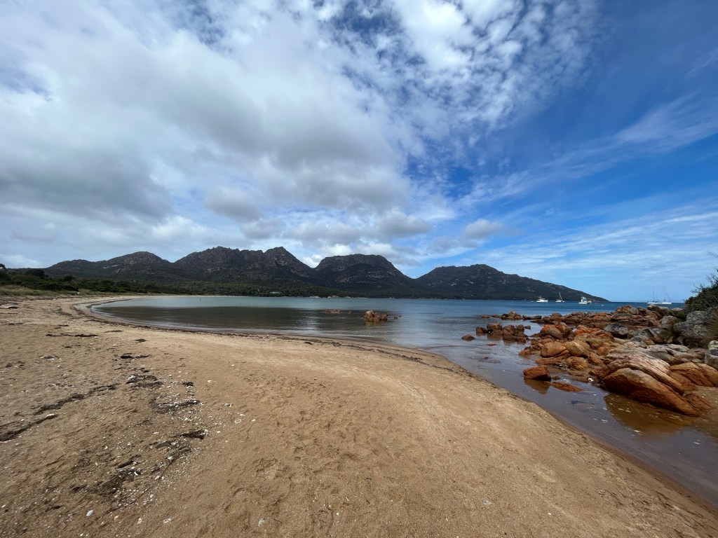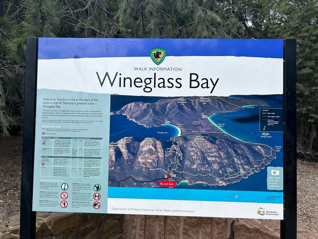 February 23, 2023 — This day was easily one of my favourite but also one of the saddest days on the tour. It was my favourite because we headed to Freycinet National Park and Wineglass Bay, which was the main reason I wanted to come to Tasmania. Plus, we had a really awesome hike and lookout over the bay. It was also one of the saddest days on the tour because a lot of our group was finishing their tour.