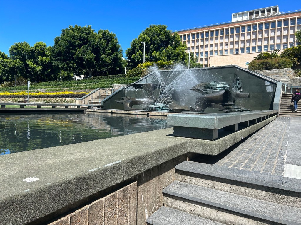 It was about forty-minutes to get to the Bogey Hole walking through town and up to the ocean. I passed Newcastle’s war memorial and beautiful fountain in Civic Park before turning on to a street that lead up what was simply named “The Hill”. And what a hill it was! The heat and the exertion caused sweat to drip down my back. I was so glad to finally make it to the top.