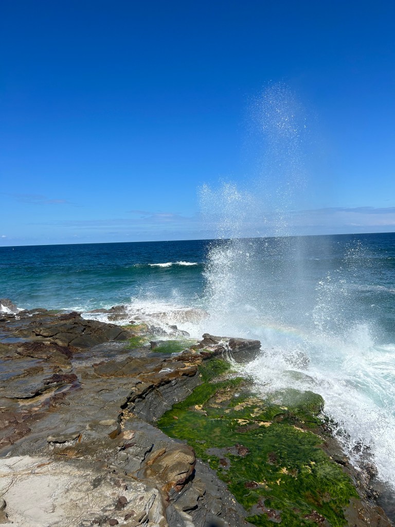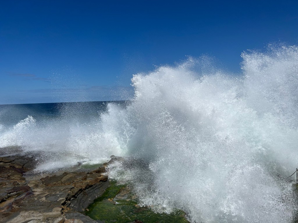 It’s a bit of a hike to get down to the Bogey Hole as you have to take the path along the beach to the stairs that lead you down to the Bogey Hole. It’s a really cool pool filled naturally by seawater and is super refreshing on a hot day because water is constantly pouring into it; it doesn’t get a chance to warm up. I went for a quick dip to cool off and then spent quite a while just watching the waves crash up against the rocks. The spray was incredible. I sat on the rocks beside the swimming hole and the spray went higher than me sometimes. Check out these photos!