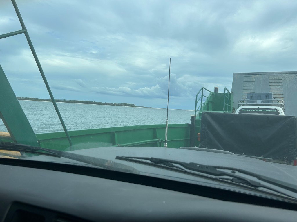 We finally piled into the cars and headed back to the mainland. (I got to drive!!) It was quite the production heading back! Since we were delayed about an hour, the tide was coming in high and lots of the sand we had to drive on to avoid the wake of the waves was soft sand. For the entire trip, we’d had a speed limit of 60 km/h (the actual speed limit for the island is 80 km/h unless otherwise posted) but we really pushed it on the way back because we had to catch the barge and were racing against the tide. We did make it with a bit of time to spare! I honestly can’t tell you how much fun I had bopping along to the music that I had going (by this time I’d kind of become the car DJ) and driving both against and in synchronized grace with the sand and the guide driving in front of me.