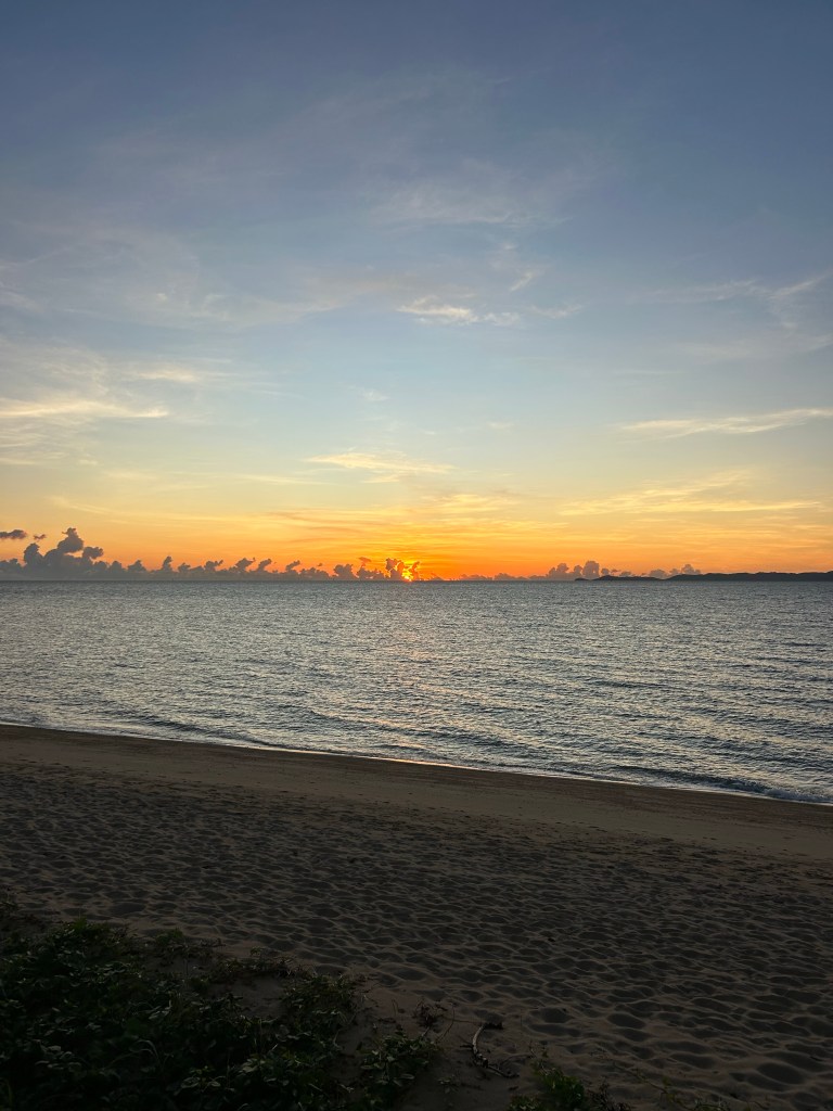 April 9, 2023 — In a twist of events that I’m not sure of the impetus for (could have been my alarm, could have been the heat of the room, could have been my own internal clock), I was up to see the sunrise. It was beautiful, although I did wish the clouds had cleared. The best part, though, was that it was so incredibly nice and cool outside. After the night left everything cold, the sun had yet to hit the Earth, and I found absolute bliss.