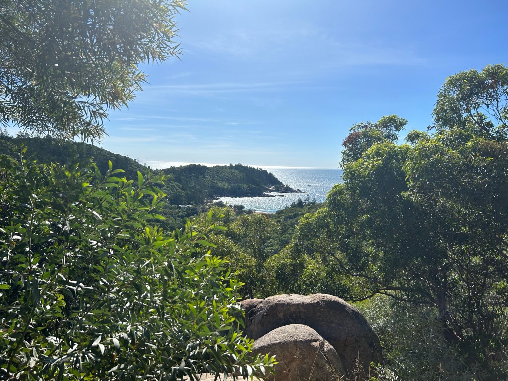 After the walk, my plan was to catch the bus heading back into town. Because I’m a glutton for punishment, I decided to hike back to the hostel as well. I took the trail that leads back to Nelly Bay (the town closest to the hostel where I stayed) which was signposted at 4km. What a trek! Up and down and around switchbacks and back up again. Just crazy. Although it definitely made me question my sanity, I must say that it had some gorgeous views. It was a relief when I finally made it out of the woods and to solid pavement. Then it was almost another hour walking along the roads to get back to the hostel, with a quick pit stop to get some pepperoni, a Gatorade, and chocolate (because it was Easter Sunday) at the IGA.