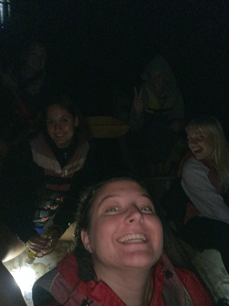 After dinner, though, the festivities werenât over! We all gathered in the dining area to have a briefing with another guide about our night canoe! We got life jackets and flashlights and piled into the bus once more, then drove a few minutes down the road to the start of the path that would lead us down to the river. It was really steep and kind of hard to walk in sandals, but you really donât want to wear anything else when youâre dealing with water sports.