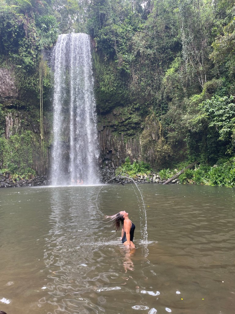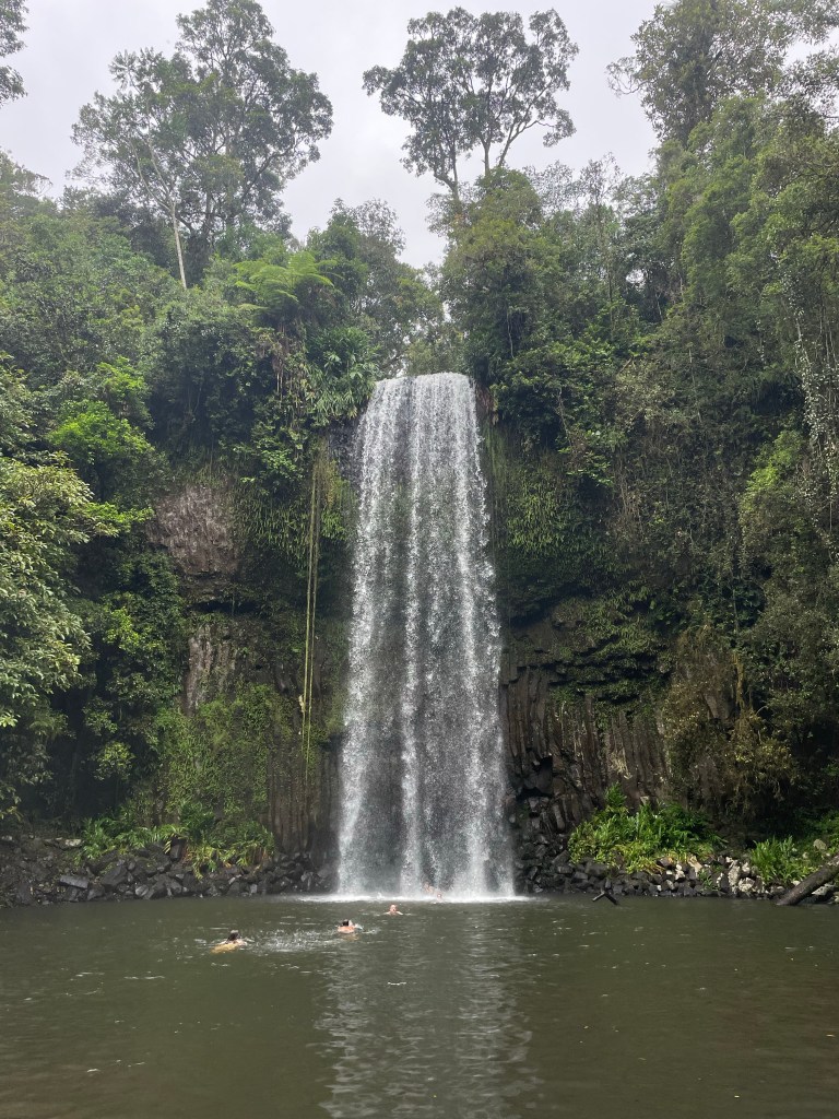 After lunch, we headed a few minutes away to Millaa Millaa Falls. This is the biggest, most amazing waterfall Iâve ever seen in my life (so far). It was so cold to swim but the view from behind the waterfall, watching the water cascade down, was like nothing Iâve ever seen. I even swam underneath the pouring water and it was amazing.