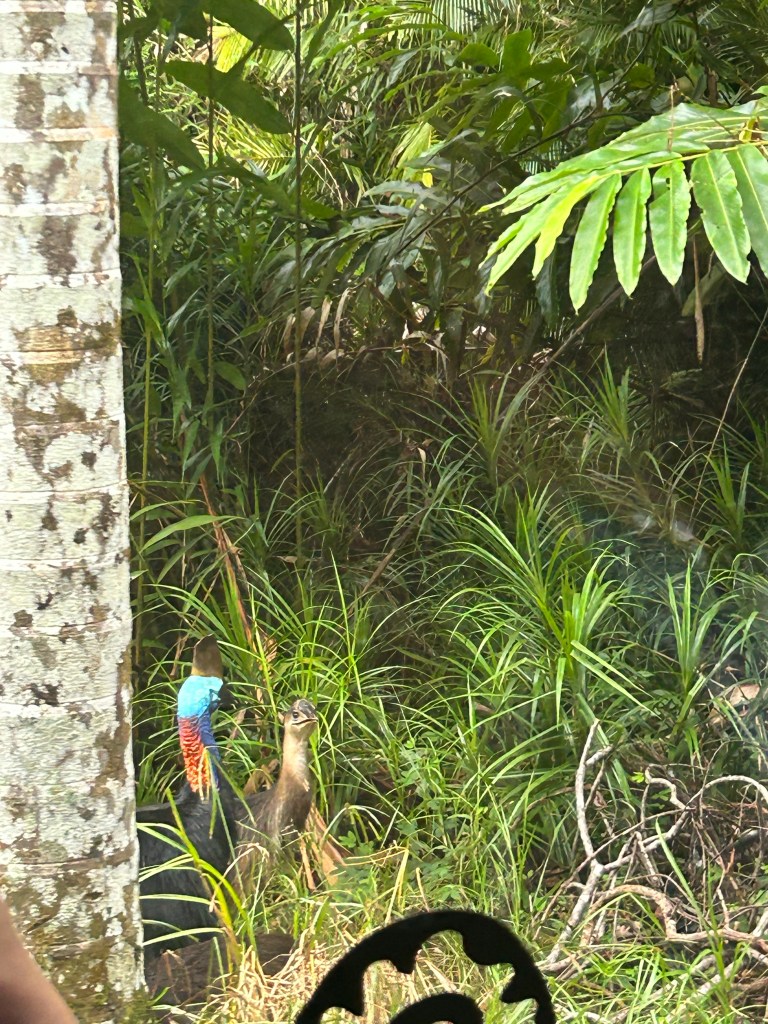 Once we got off the boat at the ferry dock, where the bus had crossed, we made our way into Cape Tribulation and the thick of the rainforest. We were on a close lookout for cassowaries, which have often been referred to as “the world’s most dangerous bird” because of the damage they can inflict if provoked. They are also one of the largest birds in the world by height and weight. Although we looked for a very long time, we didn’t actually get to see any until we were on our way back to cross the river on the ferry.