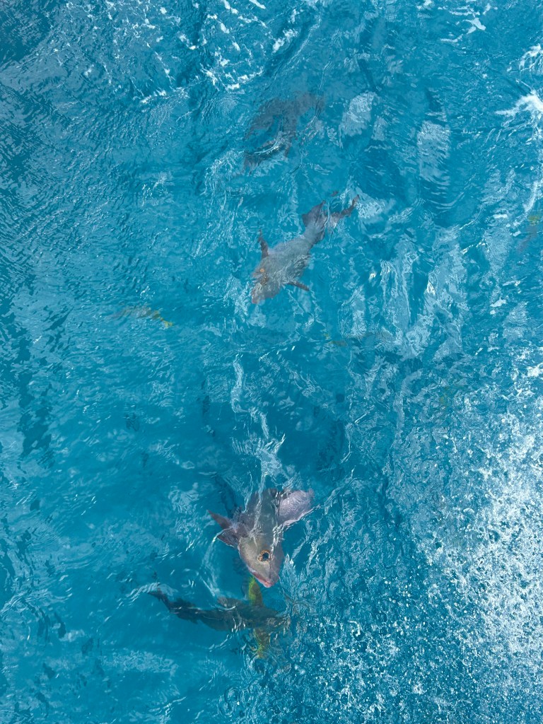 I tried to head out and snorkel for the first dive but turned around after about three minutes because it was so rough. Waves crashed over my head and saltwater went up my snorkel and the current was quite strong, pushing me back toward the boat. I was also feeling somewhat fragile again and saltwater in my mouth wasn’t helping with the seasick feeling. By the time everyone else had dove into the water, I resurfaced and got counted as back on the boat by the dive master.