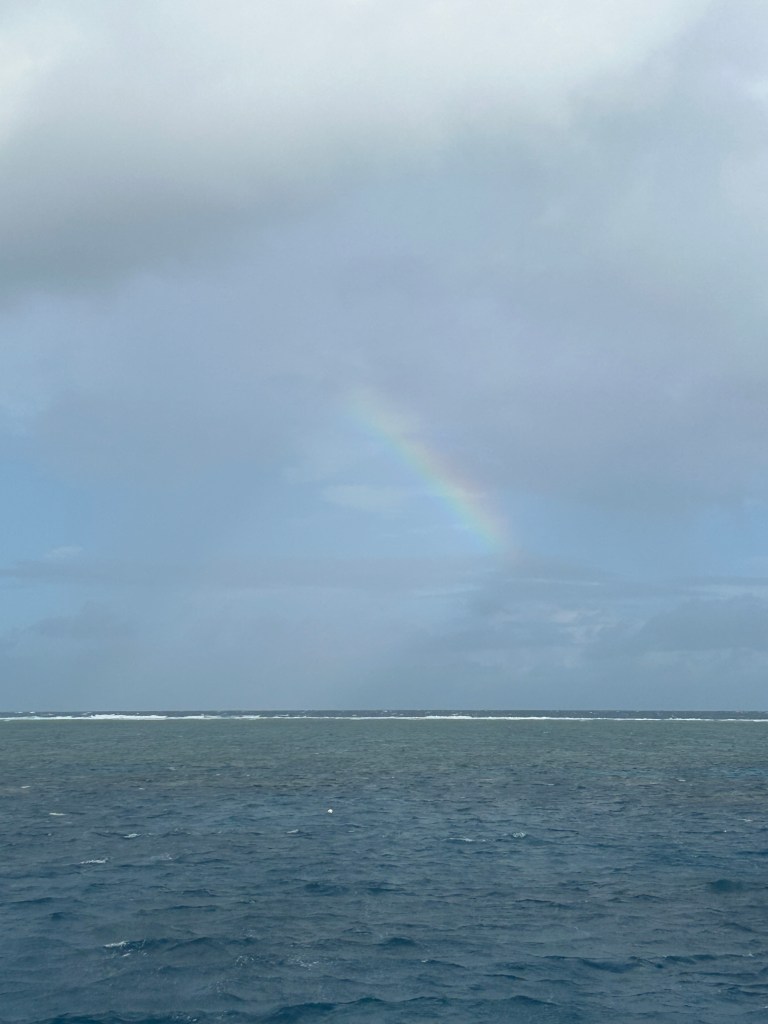 I headed up to the sun deck after I got dried off and watched the sun over the water, feeling the wind on my face and the salt in the air. My stomach was really rolling and I was just trying to hold it together so that I wouldn’t have to spew off the side. We had breakfast after the first dive and I went down, got some scrambled eggs and bacon and toast and sat back up on the sun deck again because I just didn’t think my stomach could handle sitting in an enclosed space. Given just how sick I was feeling after the first dive, I decided to just skip the second and hopefully head out for the third. We were still anchored off Malln Reef for the second dive, so I wasn’t really missing anything new. I enjoyed chilling up on the sun deck, alternating between reading a book and staring out across the horizon.