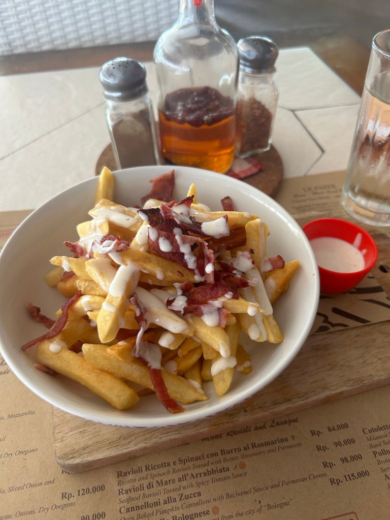 Now, before I took myself out to dinner, I was lying in my room and staring at the wall. I was scrolling through TikTok and I think it was at this point that I watched one of Crosby’s (@crosbygracetravels) YouTube videos because I didn’t realize that she and her boyfriend broke up and that video explained it. After whatever I scrolled through, I was just feeling really dissatisfied and kind of irritated with myself and just really, really starting to get down and bummed out and also nervous and anxious about getting to Gili Meno tomorrow, to Gili Air two nights later, and then going to Lombok and everything else that I have planned in Indonesia right now (except it’s not really planned) and in that moment — and still now, kind of — I just want it to be time to go to Singapore and then to Greece. One post I saw while I was scrolling was from Daisy (@daisytravels) and it was three somethings about solo travelling and one was that sometimes you need to go home and recharge, sometimes you need a break from solo travelling and from travelling in general, burnout is real and so on. And I think I’m realizing more and more that the burnout is real and that maybe that is exactly where I am and why I’m feeling the way that I’m feeling right now but I also think it’s just my anxiety about being here flaring up. I think I’m getting lost in the details and losing sight of the bigger picture again. I’m still struggling with the balance there and I think it’s going to take more time to figure out. But also — what if it really is time to head home? What if I really do need a break? What if this just isn’t the place for me? Part of solo travelling is the power to do what you want, when you want. And I’m letting prior plans dictate what I’m doing now. But is cancelling the rest of what I have planned right now really the right choice?