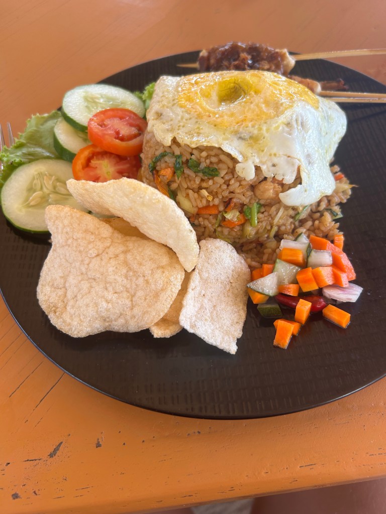 A little while later, we headed back to the hostel and one of the girls and I went for a quick swim back at the beach before heading back ourselves. The hostel had a workout class happening a little after five p.m. and it was almost three at this point. I thought to join in on that and then decided that I’d rather just have some chill time — we were having a traditional Indonesian buffet dinner later that night and then playing Werewolf, so I thought I’d save my energy for that.