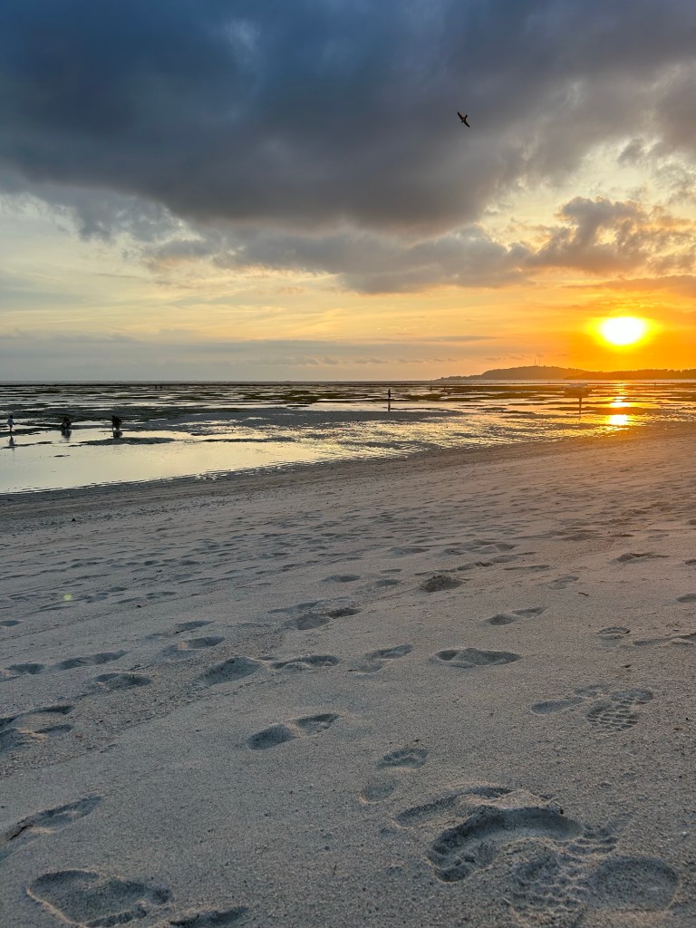 I watched sunset on the beach with my sweets from the class (the leftover kelopon) and then headed back to the hostel. I’d considered going to the open-air movie theatre that I passed a couple nights ago, but I decided against going back out after getting cleaned up and instead just relaxed into bed after m y cool shower. I read some more after calling home and fell asleep at a far more decent hour than the previous night, which was a good thing because I had to be up at a decent hour the next morning.