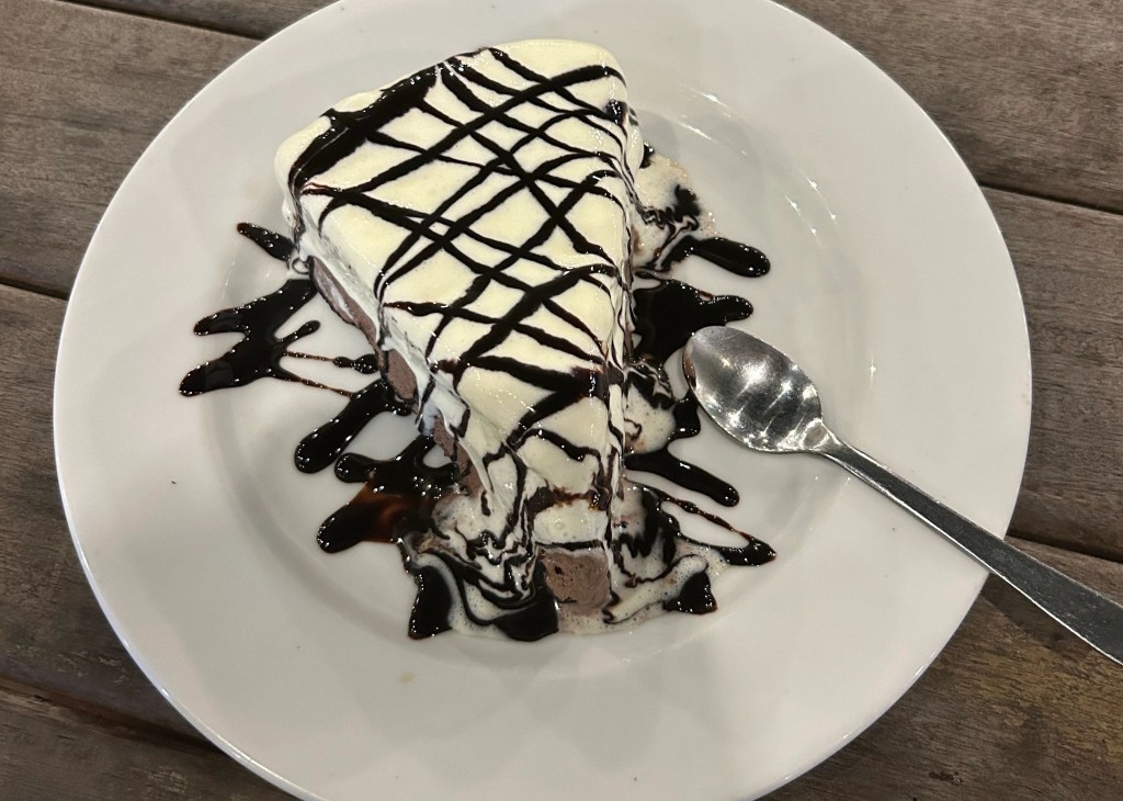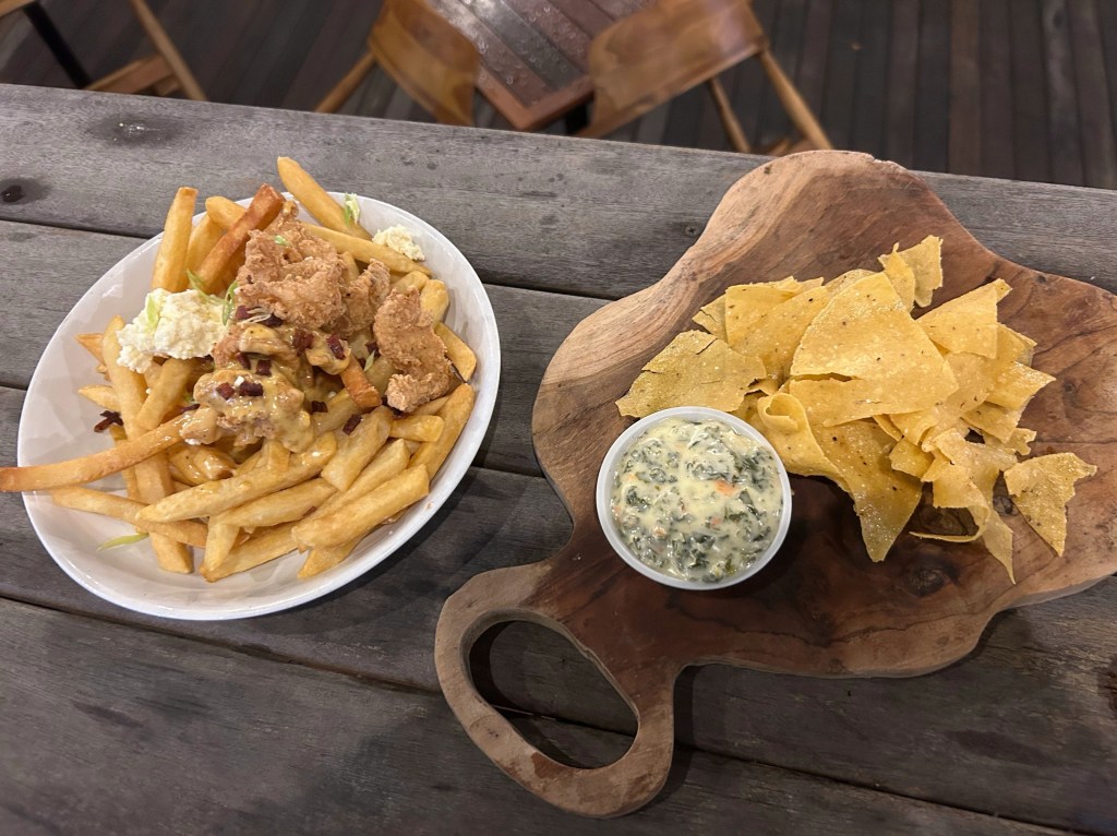 I enjoyed a really nice meal at the restaurant. I’d talked to my family that morning and they’d told me that they went out to a place called Chuck’s Roadhouse at home. We’re practically regulars for their half-price appetizers after 9pm deal and they’d enjoyed some the previous night. One of my favourite things to get for half-price apps is loaded cheesy fries and one of our family favourites is spinach dip. I was so glad to see that Nick’s Place had both of those things as options for dinner. And I even managed to talk myself into dessert.