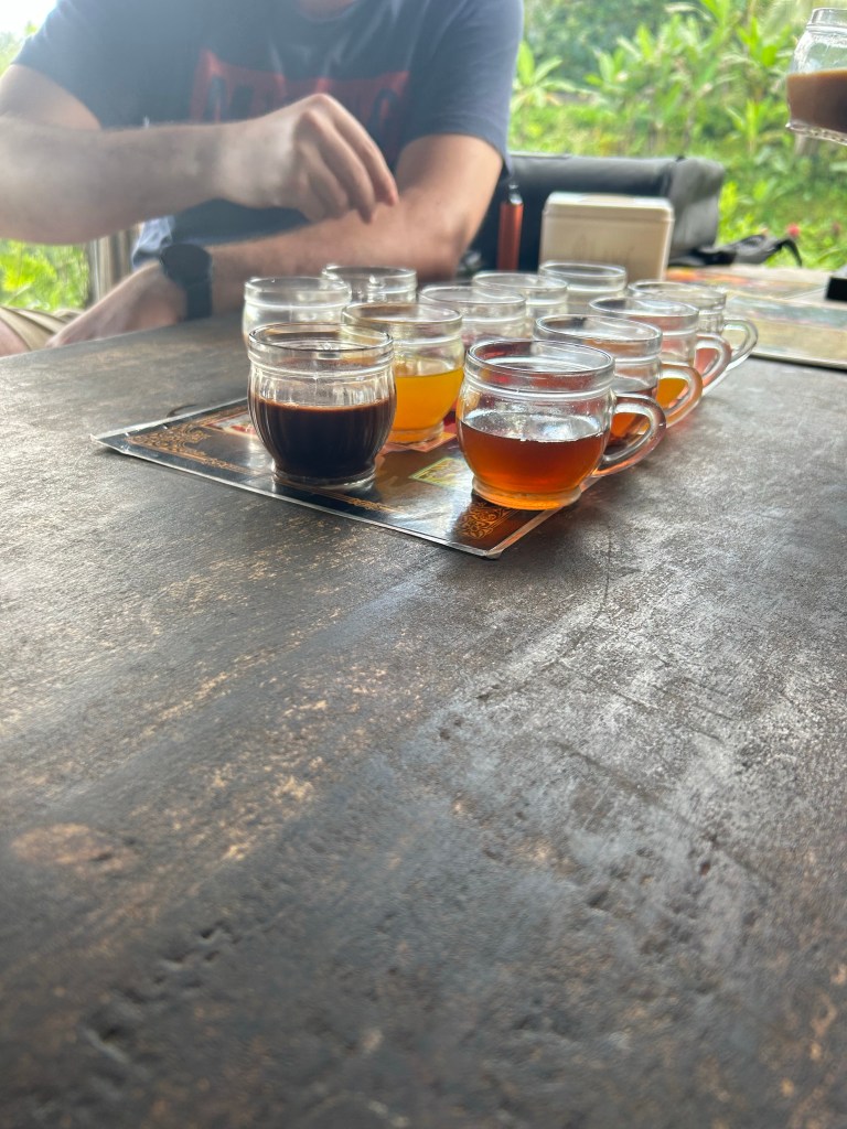 When we arrived at the coffee plantation, some of our group decided to stay back. (Actually, when I booked the tour, I didn’t even realize that this was included as part of it, even though I had seen others with the inclusion.) I decided to hop out, stretch my legs, and I was pleasantly surprised that this was included. Coffee is always a good idea. We had a little tour of the place and then got to try about sixteen different coffees and teas, even one hot chocolate, all made from the plants that they have growing on the plantation. We even got to try Luwak coffee for a small extra cost, which is actually made from the Luwak animal, which is a member of the cat family. The beans are eaten and passed by the creature, then cleaned thoroughly and removed from the husk to be roasted and ground into coffee. It’s supposed to be really smooth and I can definitely say that I agree it is, though I’m not discerning enough to say if it’s the best coffee I’ve ever had. Even so, it was a lovely little break and I really enjoyed several of the teas and the hazelnut coffee.