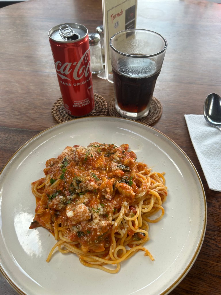 I got up at 3:00pm to the buzz of my alarm and went for “lunch.” I needed something natural to me, so I went to the place across from my hostel and got a pasta dish to replenish some carbs and calories with something familiar.