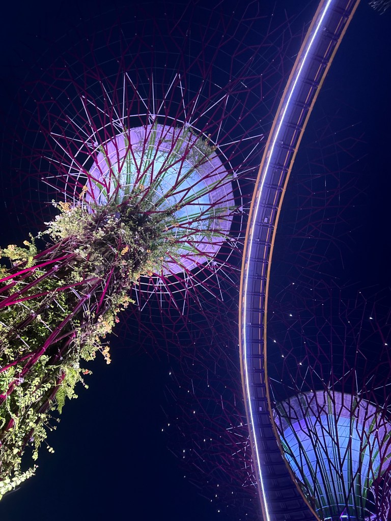 After the sun set, the time finally rolled around that I could walk over to the Gardens by the Bay nighttime show. I actually almost didn’t go. I was tired and thinking about heading to the airport early but I’m so glad that I didn’t. The Gardens by the Bay show takes places in the Supertree complex, where they have programmed the trees to light up, choreographed in time to a selection of music. Tonight’s was in tune with a mishmash of opera and it was the best thing I’ve ever seen. Right up there with Disney’s fireworks.