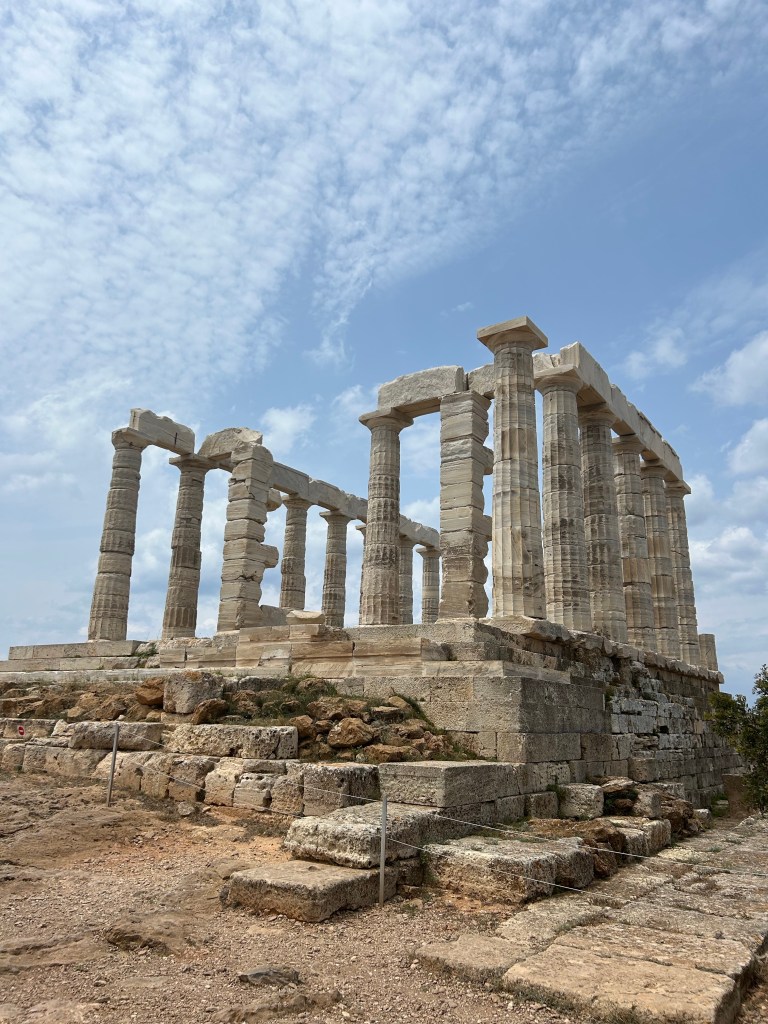 May 22, 2023 — This part of my trip was not actually completely in Athens! Today, I took a day trip on the bus to Cape Sounion. In case you don’t know, Cape Sounion is the home of the Temple of Poseidon and sits on top of a cliff in Sounio, a little town about an hour and half out of Athens. Poseidon is one of my favourite Greek gods (thanks, Percy Jackson), so I was really looking forward to this!