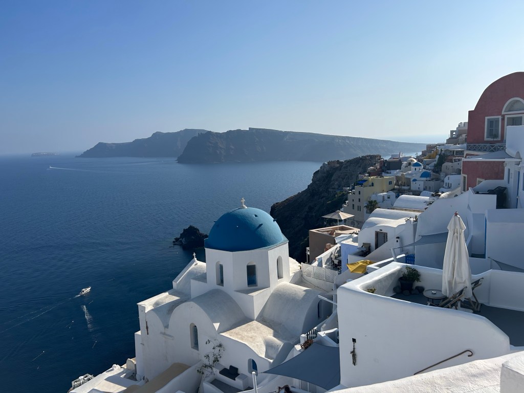 I cannot express to you how insanely busy Oia was. It was an absolute madhouse. I was jostled seven ways from Sunday and the queues for a picture of the domes was insane. It was also actually impossible to get all the domes in one picture. It looked like it was going to be a beautiful sunset, but Oia didn’t have nearly as many restaurants as Fira and I, unfortunately, didn’t have a dinner packed and I also didn’t feel like getting something random — I’m here for the Greek food! It felt like it was going to be an exercise in frustration trying to find a spot for sunset and I knew that I could find a beautiful spot in Fira. So, I decided to just get back on the bus and head back to Fira for dinner and to watch the sunset.