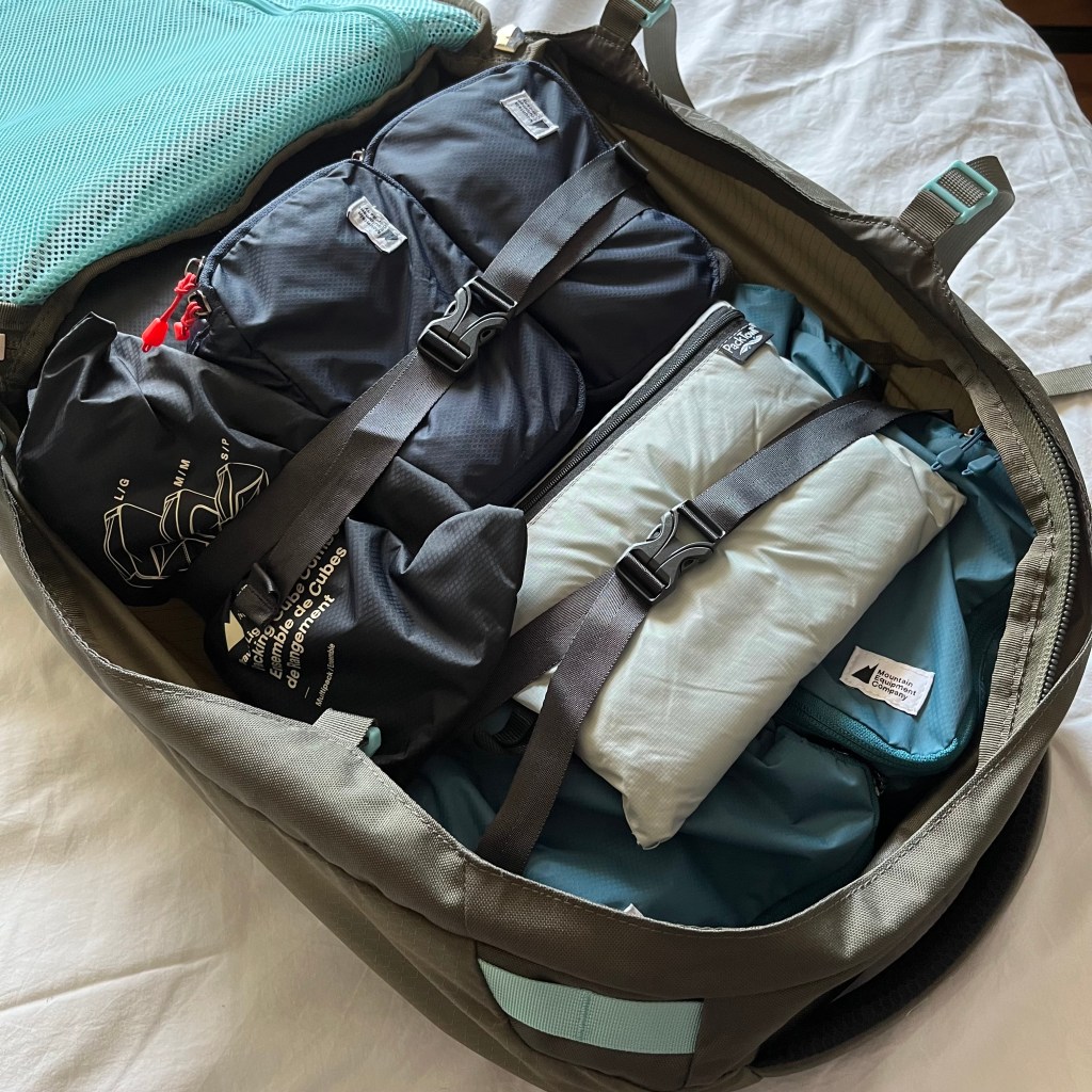 (Above) I bought packing cubes! Check out my post here to read all about them. Two words: Game Changers.The flap can also be stowed away easily when not in use. Now you see it…Load lifters – these things are incredible. They are now a must-have on any backpack for me for how well they lift weight off your shoulders – even without the hip belt and sternum straps.